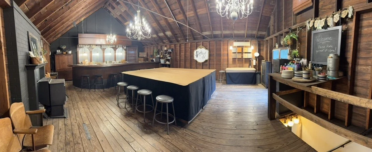FYI…You will have to go up a flight of stairs to reach the painting area.
